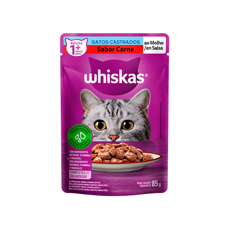 Alimento Para Gatos Whiskas Castrados Carne Sachê 85 g