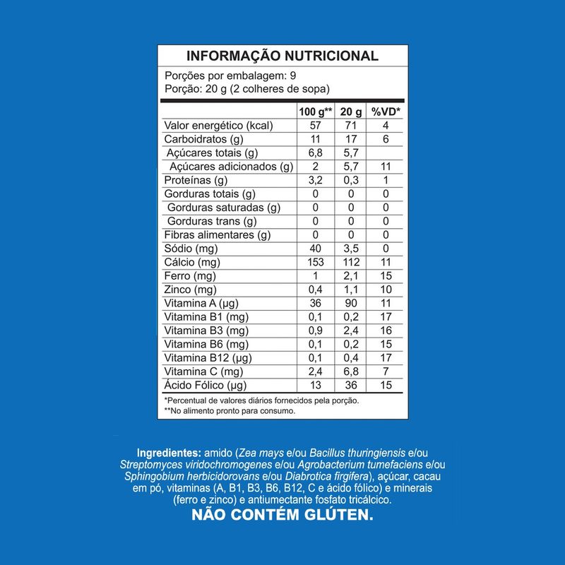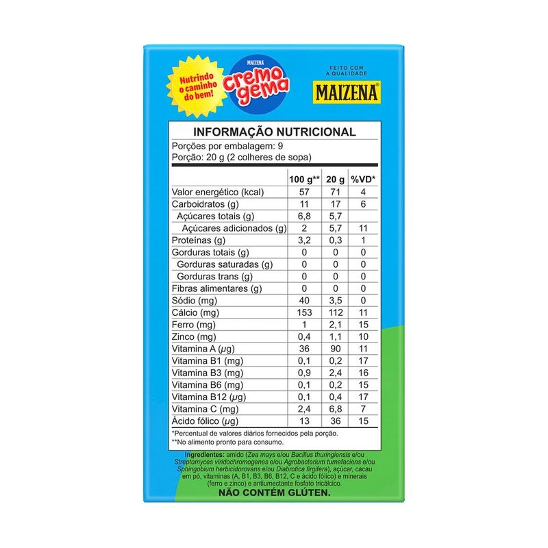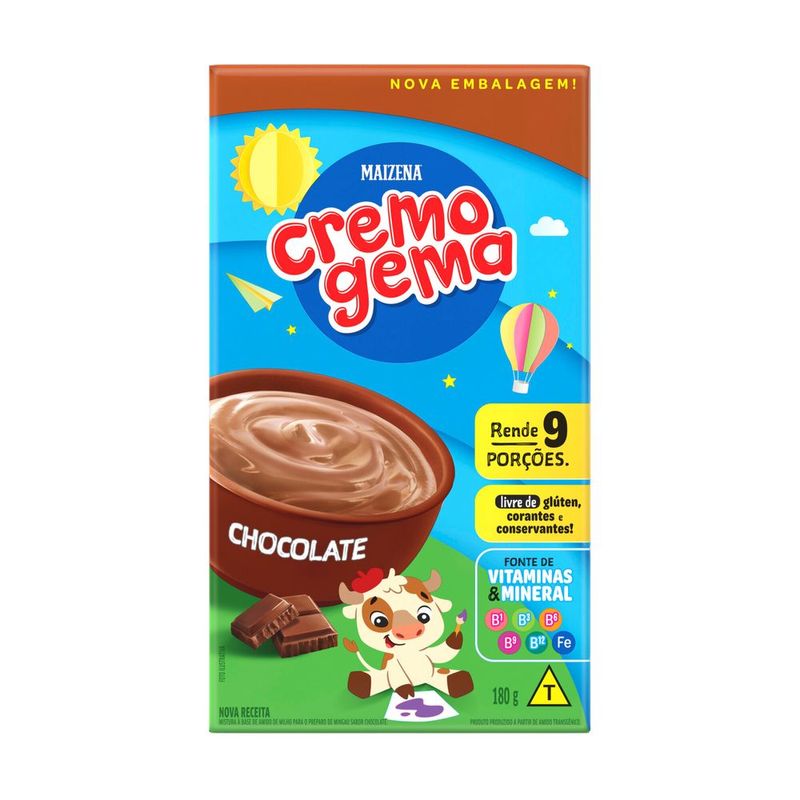 Cremogema de Chocolate Maizena (180g) é aquele mingau gostoso que passou de geração em geração. Com sabor tradicional de chocolate e textura cremosa, é fonte de vitaminas e minerais importantes para o desenvolvimento, como ferro, zinco, vitaminas A, C e do complexo B.