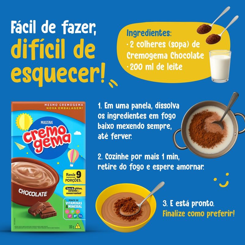 • Cremogema de Chocolate Maizena: fonte de vitaminas e minerais com sabor irresistível