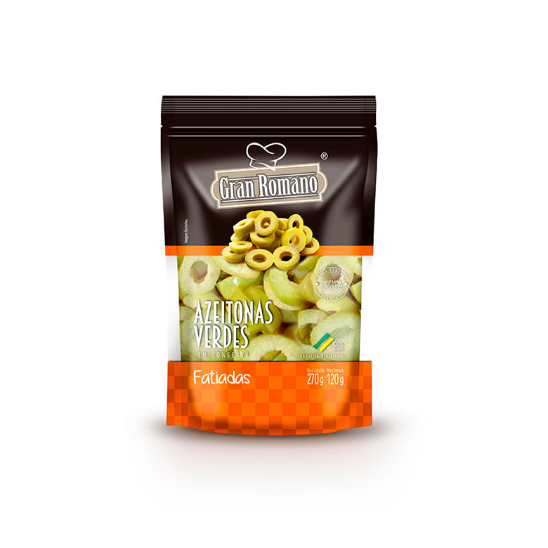Azeitona Gran Romano Verde Fatiada Sachê 120 g
