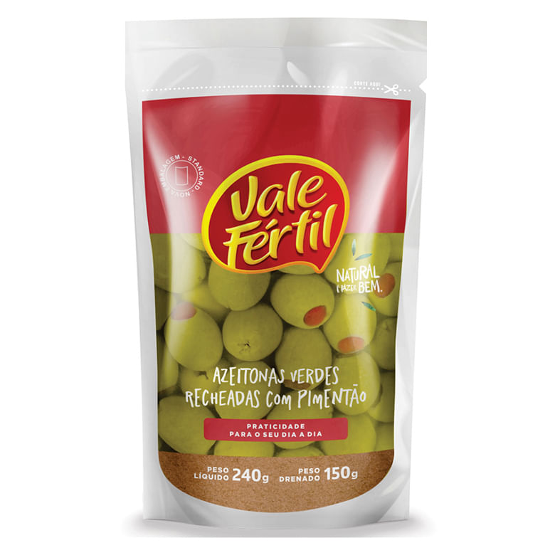 Azeitona Vale Fértil Verde com Pimentão Doypack 150g