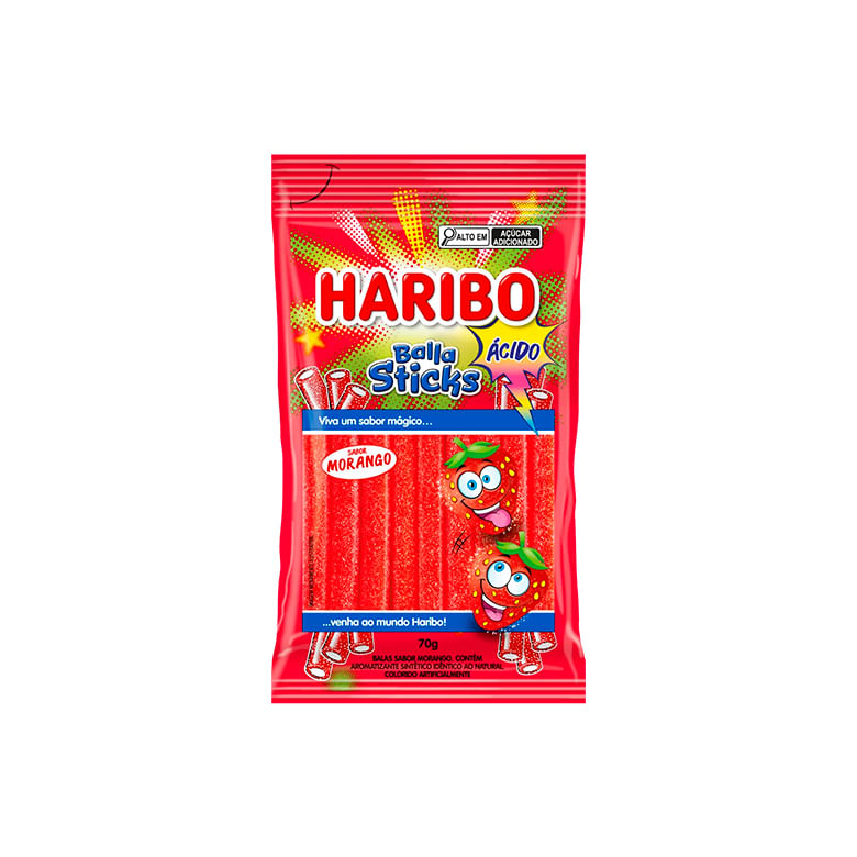 Balas de Gelatina Haribo Stick Morango Acido 70g