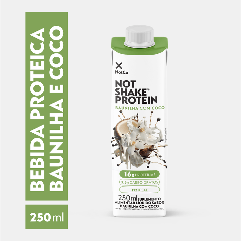 Desfrute de uma dose extra de proteína com a Bebida Proteica NotCo NotShake Protein 16g de Proteina sabor Baunilha com Coco 250ml! Com 16g de proteína por embalagem, é perfeito para um lanchinho proteico e também no auxilio da recuperação muscular. Feito com ingredientes 100% vegetais, cremoso, delicioso e nutritivo. É a escolha perfeita para pessoas com restrições alimentares: Sem açúcares adicionados, baixo em carboidratos, sem lácteos, sem glúten, sem colesterol. Experimente agora e se surpreenda!