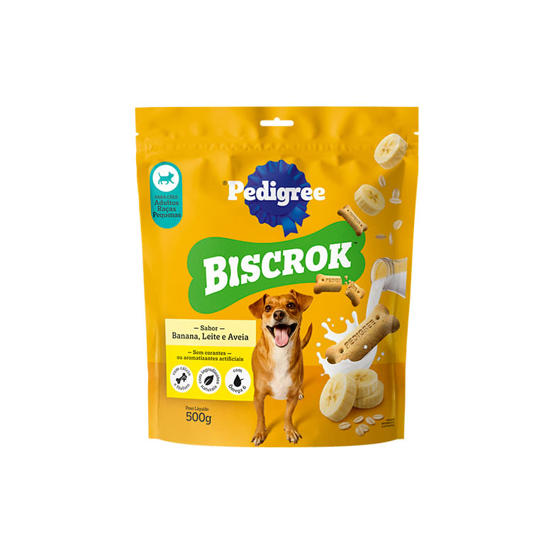 Bisc. para Cães Biscrok Adulto Raças Pequenas Banana,Leite e Aveia 500g