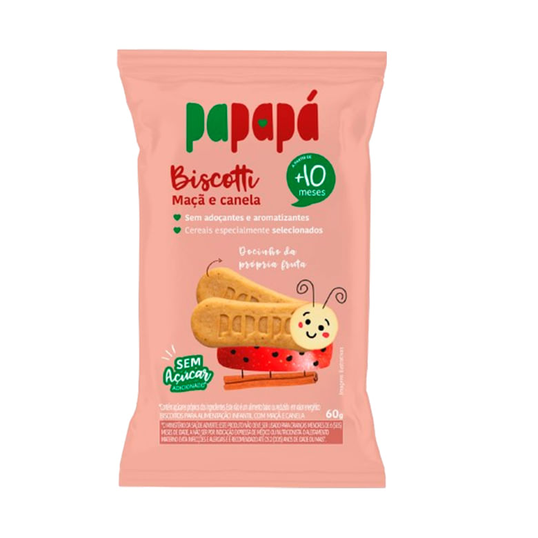 Biscoito Infantil Papapá Biscotti Com Maca e Canela 60g