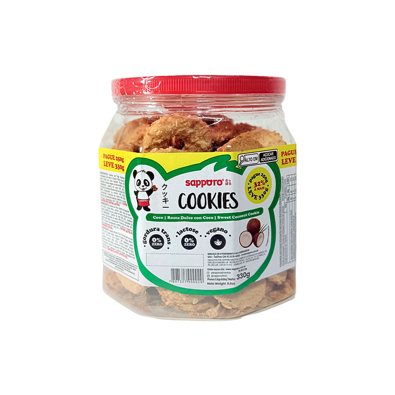 Biscoito Sapporo Rosquinha Zero Lactose Vegano com Coco Pote 330g