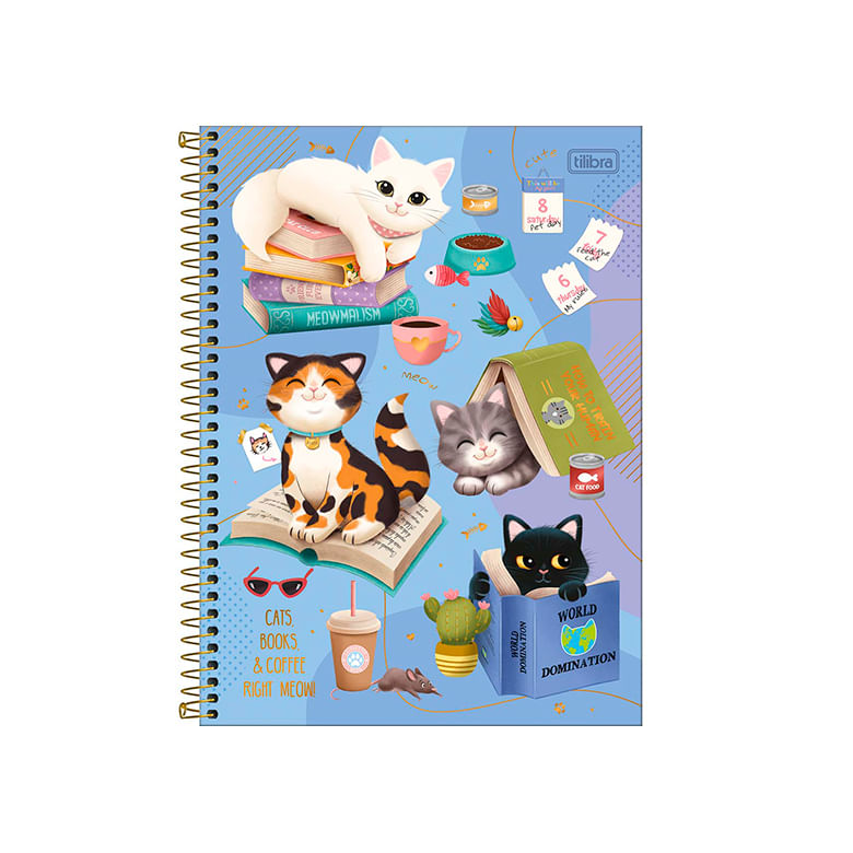 Caderno Universitário Tilibra Capa Dura Purrfect Cats 10 Matérias 160 Folhas un