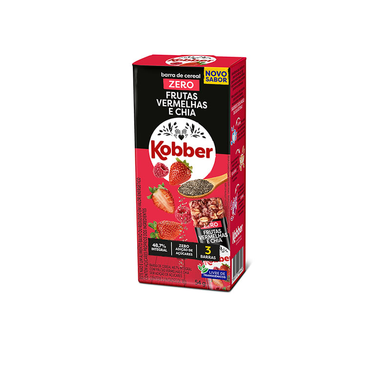 Cereal Barra Kobber Zero Açucar Frutas Vermelhas e Chia 54g