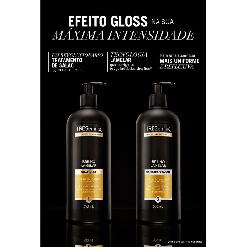 • O Condicionador TRESemmé Brilho Lamelar garante o efeito gloss na sua máxima intensidade