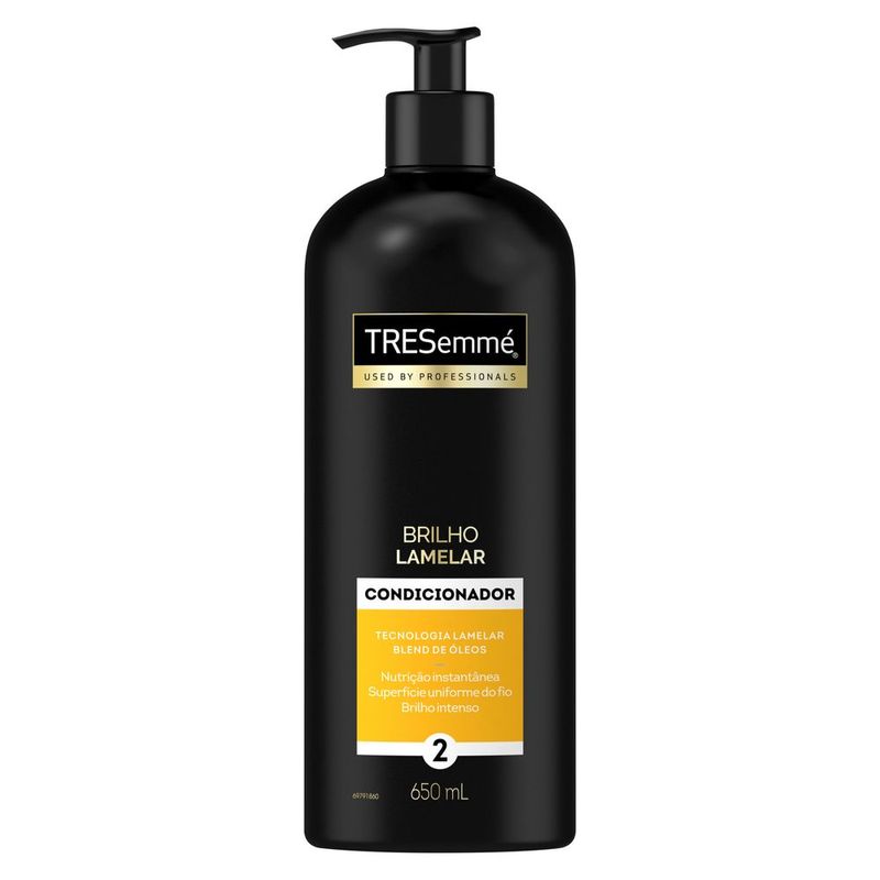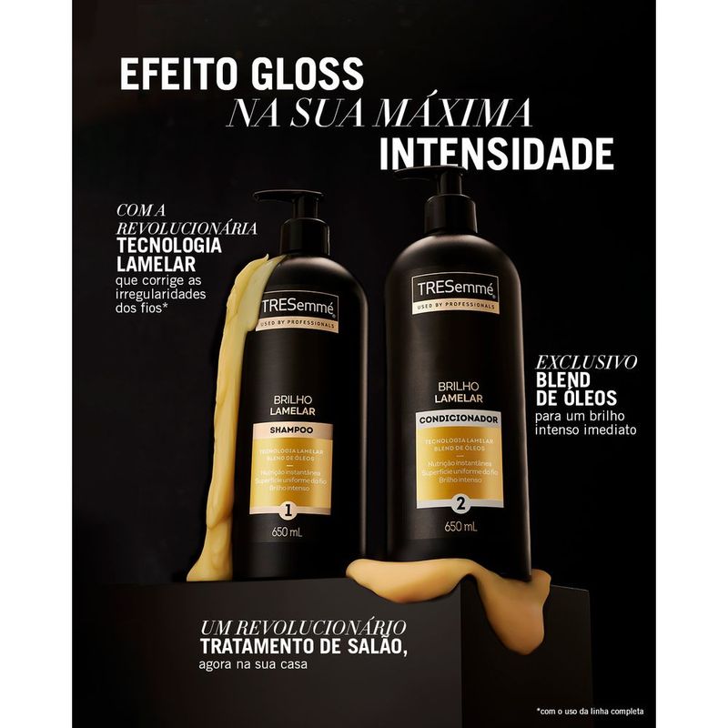 Conheça a nova linha TRESemmé Brilho Lamelar para cabelos com efeito gloss em sua máxima intensidade para cabelos com 7X mais brilho*. Um revolucionário tratamento de salão, tendência internacional, agora em sua casa. O Condicionador TRESemmé Brilho Lamelar foi desenvolvido com fórmula profissional para trazer mais brilho para todos os tipos de cabelo, do liso ao cabelo ondulado. A linha oferece: 1. Efeito gloss em sua máxima intensidade: Com um exclusivo blend de óleos, a linha proporciona um efeito gloss deslumbrante, resultando em um cabelo impactante e luminoso desde o primeiro uso. 2. Revolucionária tecnologia lamelar: Com a tecnologia lamelar inovadora, os fios serão tratados fortemente, destacando o brilho do cabelo e proporcionando nutrição superior imediata e uma correção instantânea das irregularidades capilares. Experimente também a dupla queridinha imbatível, junto do shampoo e condicionador TRESemmé Brilho Lamelar, que trata e finaliza seu cabelo: 1. Trata: Sérum de Tratamento Brilho Lamelar pode ser usado todos os dias tanto como tratamento ou como creme leave-in; 2. Finaliza: Óleo finalizador nutritivo Brilho Lamelar alinha e restaura as pontas para brilho imediato. TRESemmé, a marca aprovada por 9 em cada 10 cabeleireiros** *Avaliado por painel de experts. Com uso da linha completa. **Pesquisa realizada com profissionais de salão de beleza no Brasil