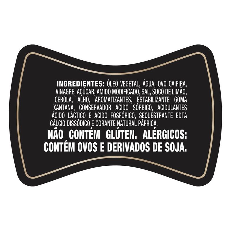 • Maionese Hellmann's Supreme: sabor irresistível e cremosidade sem igual, que vão fazer o tempo parar a cada mordida • Feita com ingredientes cuidadosamente selecionados, como ovos 100% caipiras e óleos de origem sustentável, sendo este óleo fonte de ômega 3 e 6 • Cada frasco de Maionese Hellmann’s Supreme é 100% reciclável • Maionese sem corantes ou aromas artificiais em seus ingredientes • Com a nova Hellmann’s Supreme você sempre estará preparado para transformar de uma maneira rápida e fácil o que resta na sua geladeira em sanduíches com mais sabor • Hellmann’s Supreme vem na embalagem perfeita para utilizar em lanches, sanduiches, hambúrgueres e creme de maionese Para os amantes de maionese, Hellmann’s Supreme é a maionese perfeita para você! A maionese Hellmann’s Supreme possui um sabor irresistível e cremosidade sem igual, ideal para todos os tipos de lanches, sanduiches e hambúrgueres. Feita com ingredientes selecionados, como ovos de galinha caipira e óleos de origem sustentável, Hellmann’s Supreme entrega o sabor e cremosidade perfeita para você! É a maionese tradicional Hellmann’s que você já conhece, com a qualidade de uma maionese gourmet. Nós na Hellmann's acreditamos que o segredo para o sabor está nos ingredientes que você utiliza em suas receitas. Por isso, nos dedicamos a oferecer uma cremosidade sem igual e utilizamos somente ingredientes de alta qualidade para criar uma maionese que proporcione aos nossos consumidores um sabor irresistível e sem comparação. A Maionese Hellmann’s Supreme contém 57 calorias por colher de sopa (12 g), possui ômega 3 e 6, provenientes do óleo de soja, e não contém glúten, resultando em um produto delicioso e mais saudável. É a perfeita combinação para seus hambúrgueres, batatas fritas, lanches, hot dogs, sanduíches, wraps, molho diferente, salada de maionese, com torradas ou como o petisco para receber os amigos e familiares. Cada frasco é 100% reciclável, cuidando do meio ambiente enquanto deixa seus pratos muito mais saborosos. Mais sabor, menos desperdício. A comida é importante demais para ser desperdiçada, por isso na Hellmann’s investimos na versatilidade de nossos produtos. Isso permite que você transforme o que restou em sua geladeira em verdadeiras e deliciosas refeições. Inspire-se com as nossas receitas. Com a Maionese Hellmann’s Supreme nada se desperdiça, tudo se aproveita. Experimente você também! Mais que sabor, sabor Hellmann's!