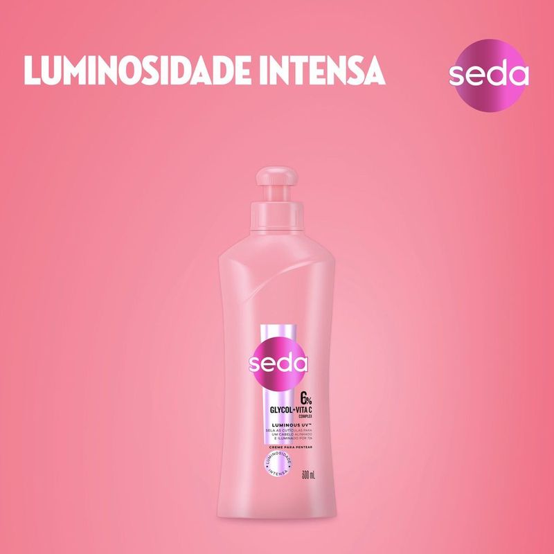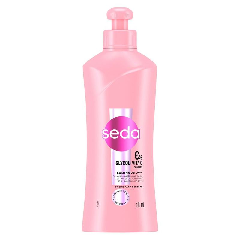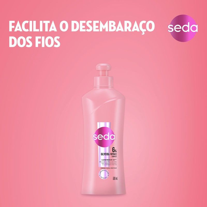 Novo Creme para Pentear Seda Luminous UV com 6% Glycol + Vita C Complex, cabelo alinhado e iluminado por 72h. Brilhe com o novo Creme para Pentear Seda Luminous UV! Nossa fórmula exclusiva facilita o desembaraço dos fios, repara os sinais de danos causados diariamente pelos raios ultravioleta (UV) e ativa a luminosidade, além de oferecer proteção térmica até 230ºC. O poderoso Glycol + Vita C Complex sela as cutículas para um cabelo alinhado e iluminado por 72 horas, mesmo sob o sol brilhante! 6% Glycol + Vita C Complex sela as cutículas, repara os sinais de danos causados pelos raios UV, deixa o cabelo com a aparência mais saudável e ativa a luminosidade. Modo de uso: Aplique sobre o cabelo úmido, não necessita de enxágue. Pentear e dar forma como de costume. Cabelos com brilho e iluminados por mais tempo com a linha completa Seda Luminous UV. Use a linha completa Seda Luminous UV para cabelos com brilho e iluminados por mais tempo, um regime completo para todos os tipos de cabelo. Além de oferecer reparação e proteção dos sinais de danos UV, a linha conta com uma fragrância envolvente, uma explosão revigorante de frutas cítricas, criando uma fragrância luminosa e cintilante.