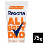 • Com o Desodorante Corporal Rexona All Body Deo Fresh Citrus você fica cheirosa no corpo todo • Desodorante feminino com tecnologia de bloqueio de odor que se adapta ao seu corpo • Desodorante indicado para outras partes do corpo, como costas, pés, virilha, bumbum, parte íntimas e mais. Consulte o modo de uso do produto • Desodorante corporal feminino com fórmula dermatologicamente e ginecologicamente testada • Uma nova etapa do cuidado com o corpo, desodorante 0% Alumínio e 0% Álcool etílico • Desodorante corporal em creme Rexona All Body Deo Fresh Citrus possui fragrância vibrante e refrescante. Chegou o novo desodorante corporal Rexona All Body Deo, com tecnologia patenteada que se adapta ao seu corpo, eliminando bactérias causadoras de mau odor de cada região do corpo e bloqueando o odor antes mesmo que ele comece, garantindo que você se sinta fresco, cheiroso e confiante no corpo todo! O novo All Body Deo está disponível em dois formatos: o creme, especialmente desenvolvido para as partes íntimas e testado ginecologicamente; e aerosol para todas as demais partes do corpo, como costas, peito, coxas e até os pés! Uma nova etapa do cuidado com o corpo, com produtos dermatologicamente testados, sem alumínio e sem álcool etílico. O desodorante corporal Rexona All Body Deo Fresh Citrus em creme possui fragrância alegre e revigorante com notas cítricas, proporcionando sensação de frescor e energia. Para usar, basta aplicar uma pequena quantidade onde desejar combater o odor, exceto nos órgãos genitais internos, aplique apenas nos órgãos genitais externos. Deixe secar antes de se vestir. Ele é leve e refrescante na pele, com aplicação invisível. O desodorante corporal de Rexona se adapta a você — onde quer que você precise — para que você possa superar seus limites. Com Rexona, queremos inspirar confiança em todos para se movimentarem mais e irem mais longe. Rexona não te abandona.