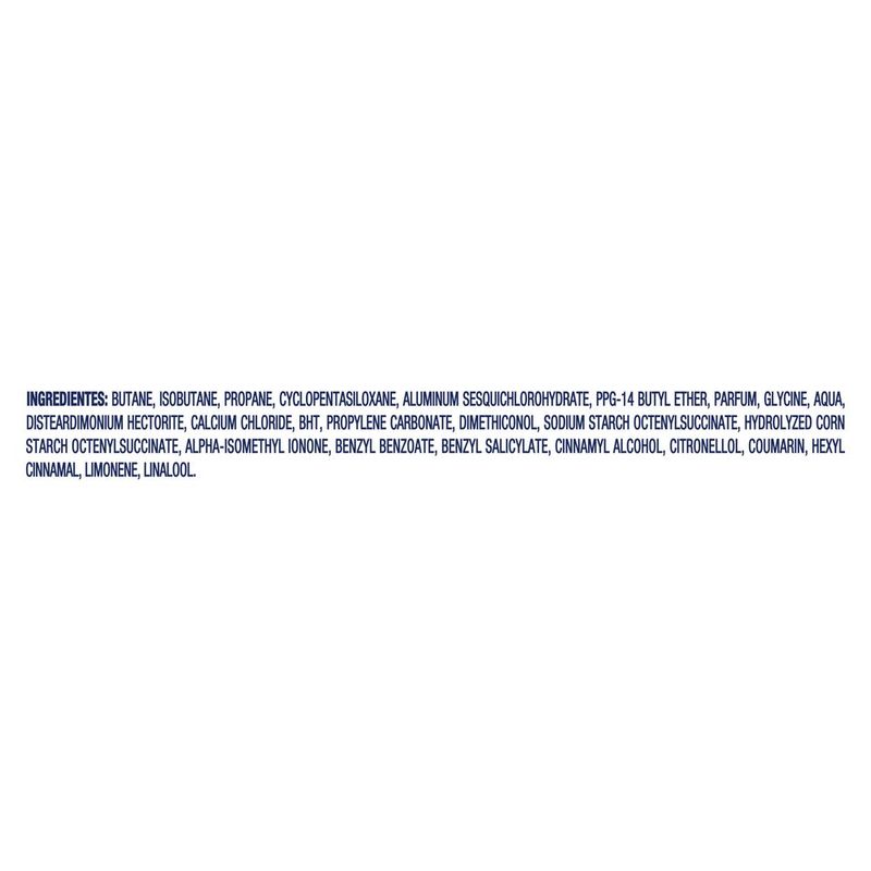 • O Desodorante Antitranspirante Aerosol Feminino Rexona Powder Dry possui nova fórmula: 72 horas de proteção contra a transpiração e o mau odor, ativada pelo movimento • O novo desodorante feminino Rexona responde diretamente ao seu movimento, mantendo você seca, fresca e protegida como nunca • A fragrância do Desodorante Antitranspirante Aerosol Feminino Rexona Powder Dry contém uma rica combinação de jasmin e baunilha, garantindo a sensação de frescor durante o dia inteiro • A fórmula do Antitranspirante Aerosol Feminino Rexona Powder Dry é 0% álcool* • Agite antes de usar. Aplicar o Desodorante Feminino Rexona Powder Dry somente nas axilas a não menos de 15 cm da pele • Este desodorante antitranspirante não afeta a camada de ozônio, possui lata em alumínio 100% reciclável e é feito com energia elétrica 100% renovável Mais uma vez Rexona se supera e relança sua linha de desodorantes com uma fórmula inovadora, que combina um novo e exclusivo ativo antitranspirante com a tecnologia de fragrâncias encapsuladas. O resultado? O Desodorante Antitranspirante Aerosol Feminino Rexona Powder Dry garante 72 horas de proteção ativada pelo seu movimento e muito mais confiança para você encarar qualquer desafio. Com o registro de 16 patentes e mais de 300 testes técnicos, está comprovado que essa nova tecnologia antitranspirante entrega um nível de proteção contra o suor como nenhuma outra proposta regular já entregou antes. A nova e exclusiva fórmula de Rexona Powder Dry trabalha com um sistema de partículas menores e mais estáveis, que formam uma barreira protetora mais resistente e duradoura contra a transpiração e o mau odor, mantendo você seca, fresca e protegida a cada novo movimento e por muito mais tempo. Sua fragrância contém uma rica combinação de jasmin e baunilha, garantindo a sensação de frescor durante o dia inteiro. Este desodorante feminino antitranspirante não afeta a camada de ozônio, possui lata em alumínio 100% reciclável e é feito com energia elétrica 100% renovável. Modo de usar: Agite antes de usar. Aplicar somente nas axilas a não menos de 15 cm da pele. Sua fórmula é 0% álcool*. Além da nova fórmula, o novo formato de Rexona aerosol 250 ml é mais econômico, onde você leva mais produto e paga menos**. Ele é o formato mais sustentável de Rexona aerosol, com uma embalagem que utiliza 23% menos metal e 41% menos plástico do que a versão de aerosol 150 ml, quando se compara o gasto por tonelada de produto. Por ano, são vendidas muitas toneladas de Rexona aerosol, então essa escolha nos ajuda a dar mais um passo em direção ao que é melhor para o planeta. Por que Rexona não te abandona. *Não contém álcool etílico. **Quando comparado à versão de 150 ml
