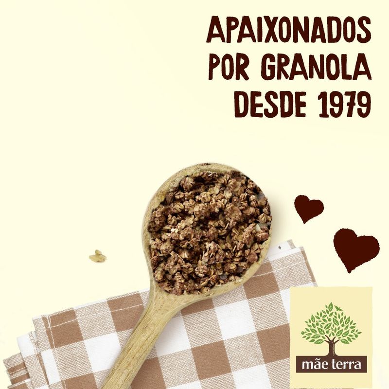 • Comece seu dia com um café da manhã saudável e gostoso. A Granola Mãe Terra Cacau é fonte de fibras e pode ser adicionada em iogurtes, leites ou receitas com granola, como preferir