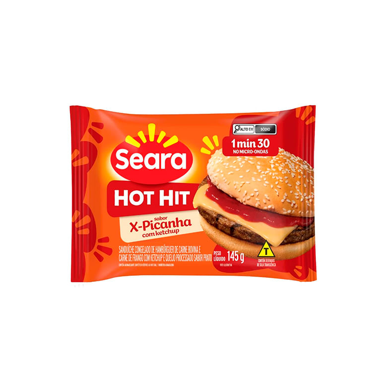 O Hot Hit picanha é o único lanche do mercado com ketchup, o que confere um gostinho muito mais que especial. Combinado com um hambúrguer suculento sabor picanha e um pão com gergelim super macio, não tem erro! Facinho de preparar, basta só 1:30min no micro-ondas para você matar a sua fome com um lanche sem igual no mercado!
