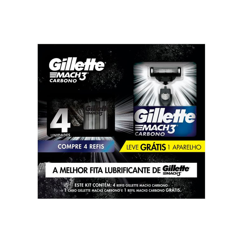 Kit Aparelho Barbear Gilette Mach 3 Carbono + 2 Cargas un
