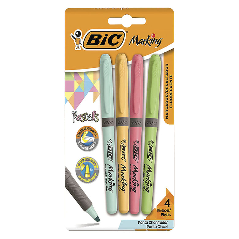 Kit Marcador Bic Marking Tons Pasteis 4Unidades