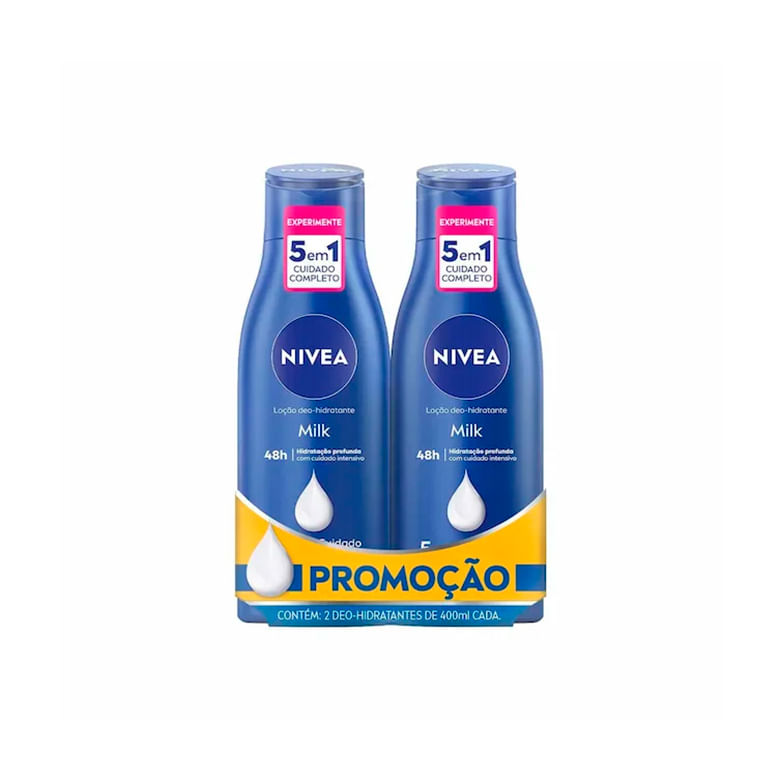 Loção Hidratante Nivea Body Milk c/ 40% Desc.na 2 unid. 400ml