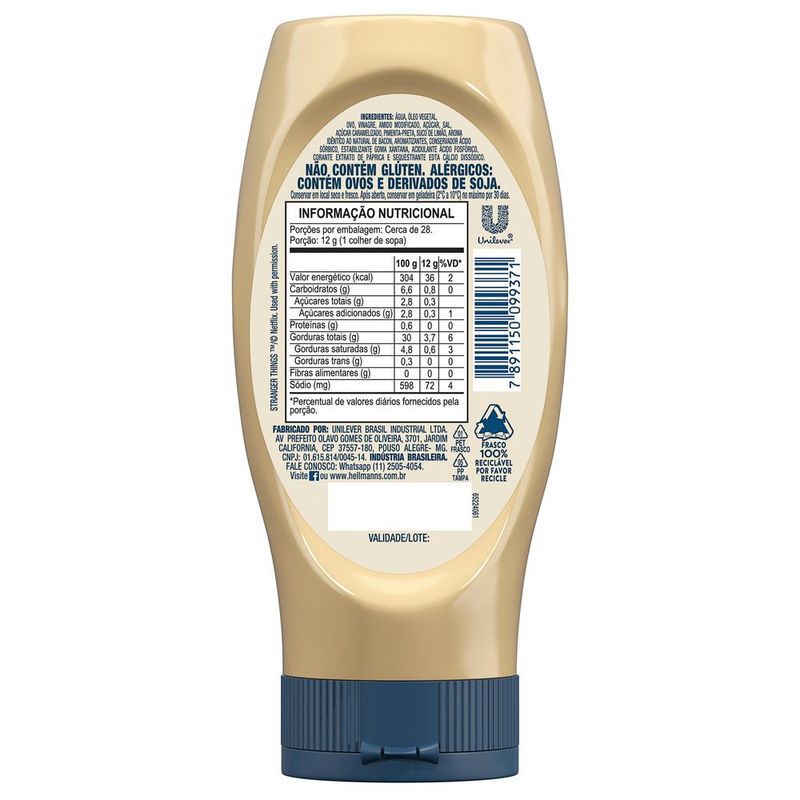 • Maionese Hellmann's Bacon 335g: sabor suculento, com o toque irresistível de bacon para transformar suas receitas.