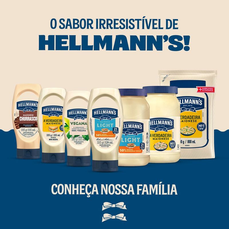 Hellmann’s Light. O sabor irresistível que você ama, agora com menos calorias.