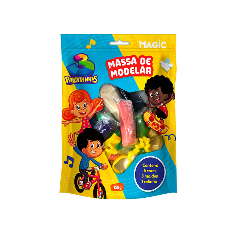 Massa Modelar Magic 3 Palavrinhas com 6 Cores + 3 Moldes un