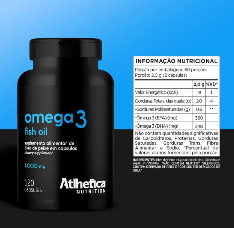 Ômega 3 Atlhetica Fish Oil 1000mg 120 Cápsulas un