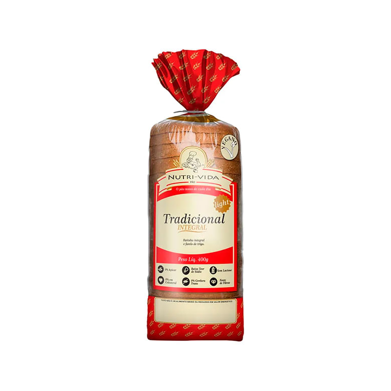 Pão de Forma Nutri Vida Integral Vegano Tradicional 400g