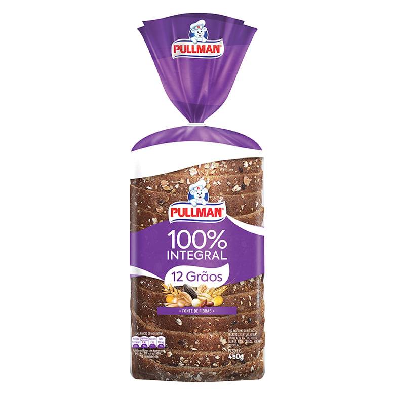 Pão de Forma Pullman 100% Integral 12 Grãos 450g