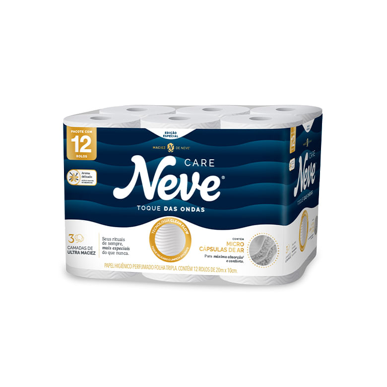 Papel Higiênico Neve Folha Tripla Toque das Ondas com 12 Rolos 20m