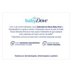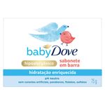 • O Sabonete em Barra Baby Dove Hidratação Enriquecida é hipoalergênico e ajuda a manter a hidratação natural da pele do bebê • Sabonete em barra formulado sem corantes, parabenos, sulfatos ou ftalatos e testado por oftalmologista, dermatologista e pediatra • Sabonete hidratante feito com nutrientes naturalmente encontrados na pele e suave até para o primeiro banho do recém-nascido • O Sabonete em Barra Baby Dove Hidratação Enriquecida deixa a pele sensível do bebê limpa, macia e hidratada • Sabonete em barra Baby Dove feito com ¼ de creme hidratante • Nosso sabonete em barra para bebês possui uma fórmula mais suave e hidratante do que qualquer outro sabonete em barra comum de bebê* Feito com ¼ de creme hidratante, nosso Sabonete em Barra Baby Dove Hidratação Enriquecida é hipoalergênico e ajuda a manter a hidratação natural da pele do bebê. A hora do banho com seu bebê é especial, por isso sabemos que você quer o melhor sabonete para esse momento. Nossa delicada fórmula é mais suave e hidratante do que qualquer outro sabonete em barra comum de bebê*. Esse sabonete em barra ajuda a repor a hidratação e os nutrientes perdidos durante o banho, tem pH neutro e limpa delicadamente, deixando a pele sensível do bebê suavemente perfumada e macia. O Sabonete em Barra Baby Dove Hidratação Enriquecida é criado sem corantes artificiais, parabenos, ftalatos ou sulfatos e é testado por dermatologista, oftalmologista e pediatra. Suave e hidratante para a pele, esse sabonete para bebês é ideal para uso diário. Modo de uso: molhe a pele do bebê com água morna, massageie suavemente o produto no corpo do seu bebê, até fazer espuma. Enxágue em seguida. Após o banho, experimente também hidratar o corpo do seu pequeno pelo menos duas vezes ao dia, com um produto de fórmula suave e hipoalergênica, como a das Loções Baby Dove. *Sabonetes comuns em barra sem nutrientes essenciais da pele.