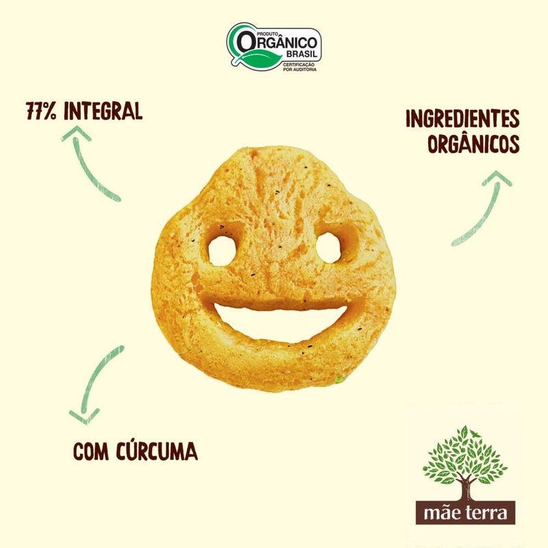 • O Salgadinho Mãe Terra Zooreta Cebola é 100% vegano, 77% integral, com cúrcuma e livre de transgênicos