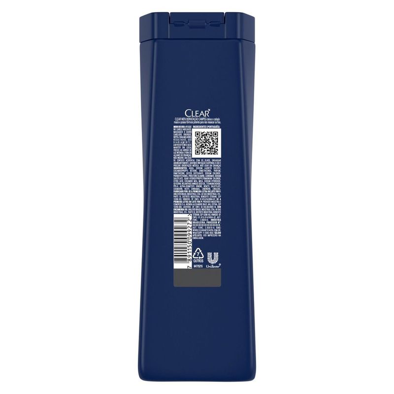O Shampoo Anticaspa Clear Men Hidratação Campeã foi desenvolvido para homens, porque o couro cabeludo do homem está propenso a caspa. Sua fórmula potente foi elaborada para não ressecar os fios, além de sua ação anticaspa que ajuda a acabar com a caspa recorrente*. Este shampoo anticaspa hidrata os cabelos, deixando-os limpos e macios. O shampoo Hidratação Campeã é indicado para homens com todo tipo de cabelo que necessitam de um boost de hidratação. Aplique no cabelo molhado, massageie o couro cabeludo e enxágue. Repita. Para melhores resultados, use diariamente. Quanto mais se esforça, mais seu corpo irá protestar. O suor e a umidade em um dia intenso ou após a prática de esportes, podem deixar você com um couro cabeludo com coceira, o que possivelmente ajudará no aparecimento da caspa. Em Clear Men, queremos inspirar as pessoas a mostrar ao mundo do que são feitas, ajudando-as a se tornarem resilientes, eliminando ansiedades e dúvidas. Que tenham a confiança para dar o seu melhor! Por isso, os Shampoos Clear foram desenvolvidos para fortalecer o couro cabeludo e acabar de vez com a caspa, além de proporcionar uma sensação refrescante que dura o dia todo. Clear, nada a esconder! *livre de escamas visíveis com o uso regular.